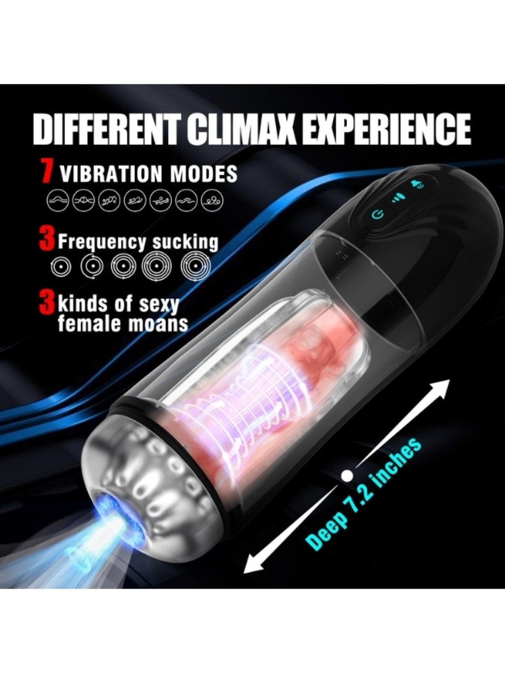 Censan İnleme Sesli ve Titreşimli Otomatik Modern Suni Vajina Mastürbatör – 7 Modlu Dönebilen, USB Şarjlı